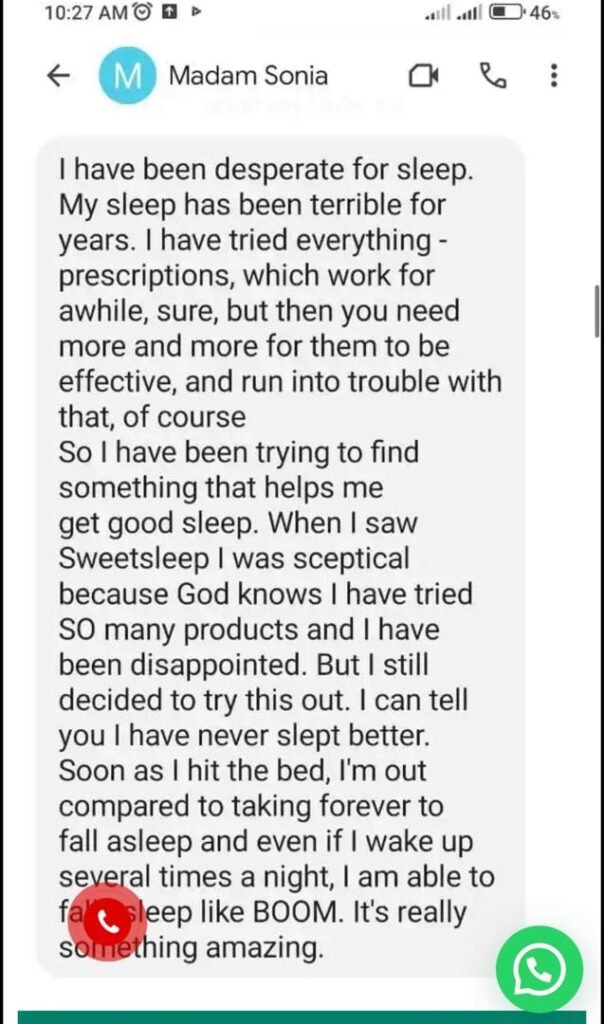 “Normally I wake up 3–4 times every night. After two nights with Sweet Sleep, I now sleep straight till morning.”